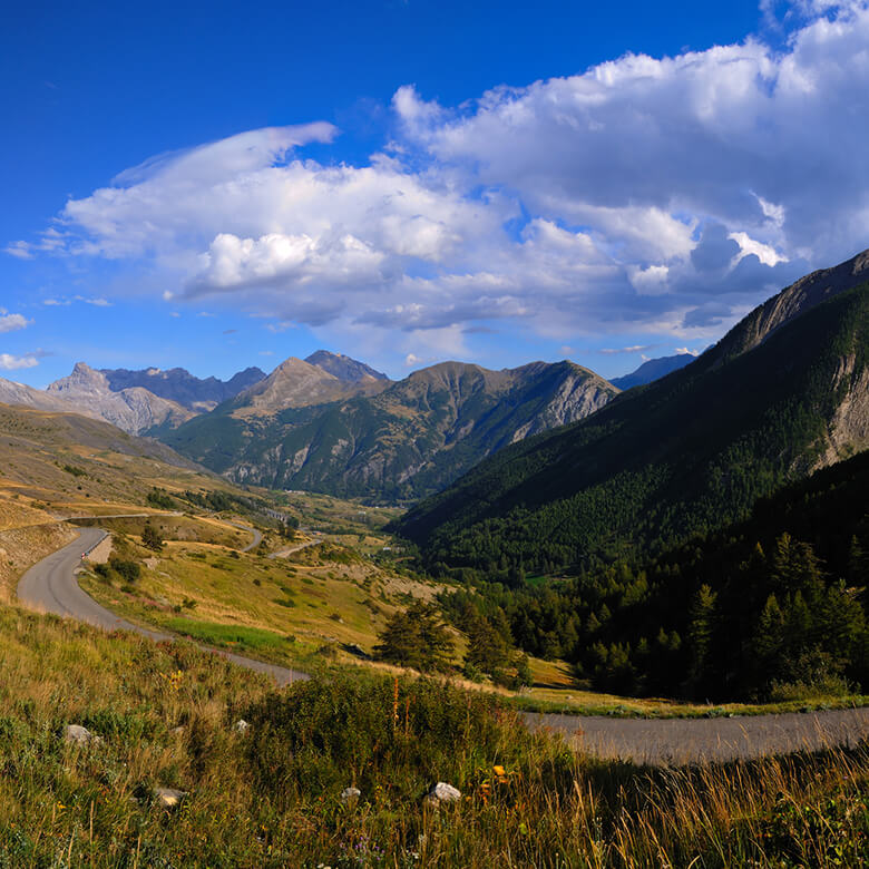 Un emplacement idéal dans les Alpes du Sud, sur la Route des Grandes Alpes – au carrefour du Queyras, des Écrins, de l’Ubaye de l’Italie – aux pieds des grands cols Alpins